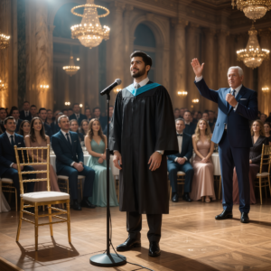 En la fiesta de graduación, mi hijo me subastó por 1 centavo: “¿Quién quiere a este viejo inútil?” Los 400 invitados se reían de mí… hasta que un desconocido al fondo del salón levantó la mano y dijo: “¡2 millones!” ¡Lo que dijo después hizo que mi hijo entrara en pánico en el escenario!