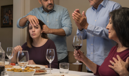 Miré a mi hija. Tenía los hombros encogidos, el rostro pálido, la mirada clavada en el plato, como si allí pudiera esconder su vergüenza. Mi yerno volvió a su asiento con naturalidad, como si no hubiera hecho nada fuera de lo común. Incluso se sirvió más vino. Y su padre, ese hombre grande, de bigote grueso y ojos duros como piedras viejas, seguía sonriendo satisfecho.