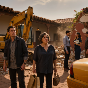 Apenas bajé del taxi después de un largo viaje de trabajo, el corazón se me apretó al ver una excavadora enorme golpeando sin…